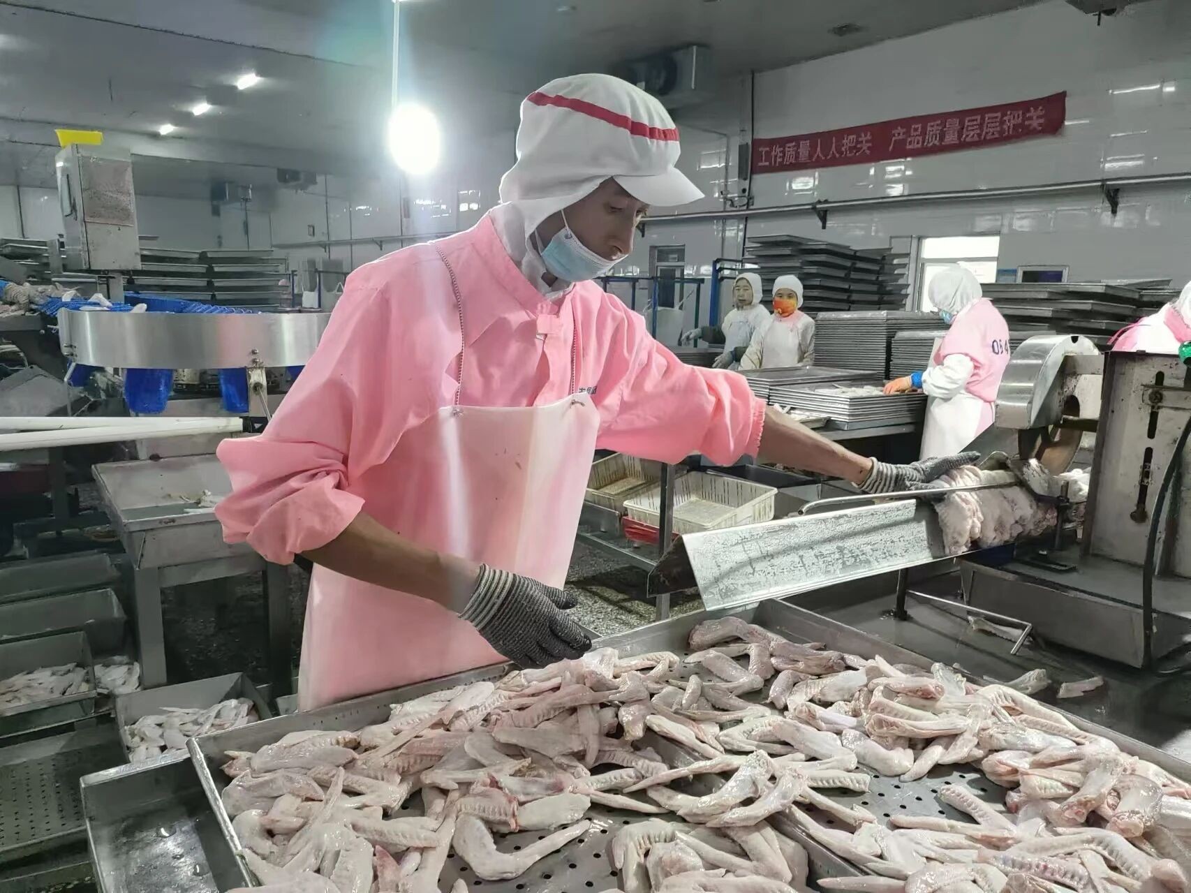 在企业的蓬勃发展中,每一位员工的辛勤付出都是推动公司前进不可或缺的力量。在惠生公司生产车间这个充满活力与创新的环境中,有这样一位员工,他以卓越的技能、无私的奉献和不懈的努力,成为了同仁学习的榜样,他就是——秦国敬,一位平凡岗位上的不凡之星。           精湛技艺,质量为先       秦国敬自加入公司以来,始终将“精益求精”作为自己的工作格言。在车间流水线上,分割下来的鸭腿个个完整无缺,鸭壳皮肉甚是罕见,在日常检查、质量评比、技术比武中,得分总是排名第一,被班中称为“割腿先锋”。    技能加持,全面发展       秦国敬深知,想成为班上的“扛把子”,唯有不断提升技能保持较高的全面技术。因此,他不仅是割腿技术上的能手,更是切皮质量规范的践行者。面对生产过程中遇到的难题,他总是第一个站出来,主动与班长提出自己的想法与见解。在他的行动中腿班的鸭壳皮肉从未超越过 10 克,在鸭腿切皮岗位中切的鸭腿不亏皮、不长皮,合格率均在 90%以上,腿班的质量总是遥遥领先。     无私奉献,高效执行       在同事眼中,秦国敬是一位乐于助人、甘于奉献的好伙伴。 无论是谁遇到技术难题,他总是第一时间伸出援手,耐心解答,毫无保留地分享自己的经验和技巧。管理人员安排的工作他总是第一个收到执行。有时同事半开玩笑的说班长跟你有亲戚呀,让你做什么你都做。他只是微笑的回应道“班长 既然安排了我说明信任我,那就得干好”。因此,营造了一个和谐、积极向上的工作氛围。在他的影响下,车间团队凝聚力和战斗力显著增强。   责任担当,安全为先      在生产一线,安全生产始终是头等大事。秦国敬深知自己操作的边腿锯有风险,他时刻紧绷安全这根弦,严格遵守安全操作规程,认真执行安全检查制度。同时,他还积极参与安全培训和应急演练,不断提升自己的安全意识和应急处置能力。在他的影响下,车间员工的安全意识普遍增强,安全事故率大幅下降,为公司安全生产工作树立了典范。           秦国敬以他的实际行动诠释了什么是优秀员工。他的事迹不仅激励了车间每一位员工,更为公司树立了宝贵的精神财富。在未来的日子里,大香蕉官网视频相信秦国敬将继续保持这份热情和执着,也期待更多像秦国敬这样的优秀员工涌现出来,为公司的发展贡献更大的力量。   END